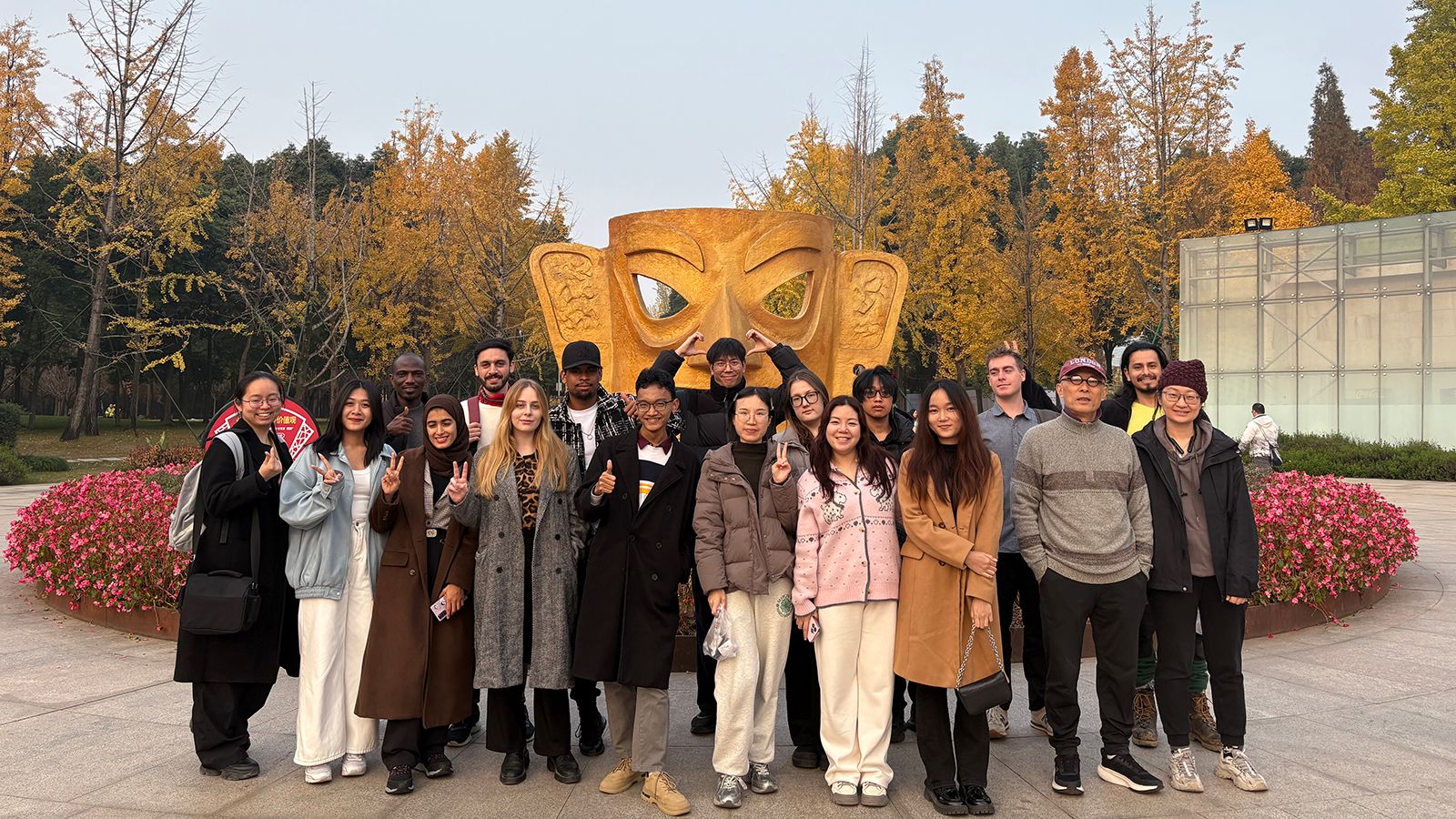From November 29 to 30, 2025, the School of Architecture and Urban Planning organized a two-day cultural trip to Chengdu for over 20 international students from 19 countries. Accompanied by their academic supervisors, course instructors, and class advisors, the group visited the Jinsha Ruin Site Museum and the Du Fu Thatched Cottage Museum, embarking on an immersive cultural journey that spanned from the ancient Shu civilization to the former residence of Du Fu, the celebrated poet saint of the Tang Dynasty.